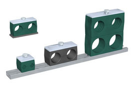 Řada jednoduchých držáků trubek a hadic (nazývaná také "Dvojitá řada") odpovídá normě DIN 3015-3 a obsahuje díly pro kompletaci různých variant uchycení jedné trubky, hadice, kabelu nebo jiného komponentu s vnějším průměrem do 42 milimetrů.